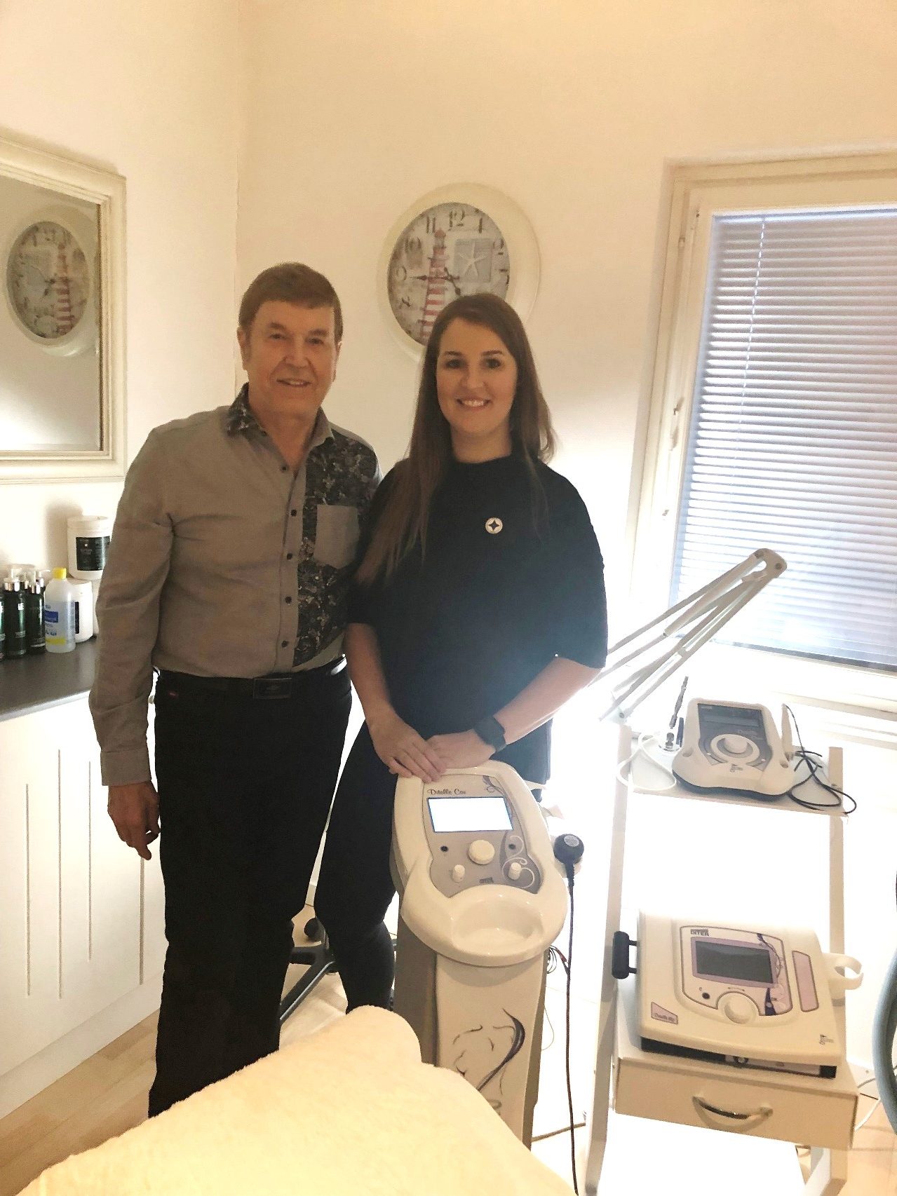 Minna: Ditelle tarjoaa laajan hoitovalikoiman sekä miehille että naisille. Useimmissa hoidoissa käytetään hoitotuloksen parantamiseen laitteita. Itse teen eniten kestopigmentointeja sekä valoimpulssihoitoja, toinen kosmetologimme tekee muita perinteisempiä hoitoja sekä laitehoitoja.