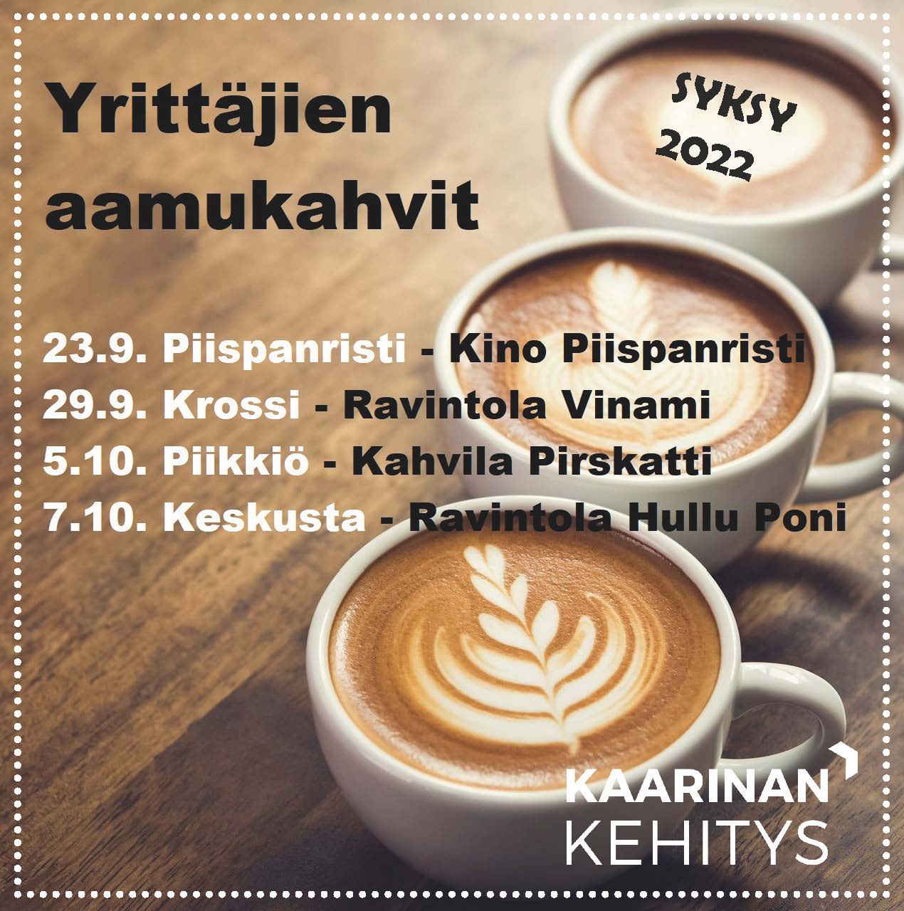 Tule tapaamaan kaupungin päättäjiä ja vaihtamaan kuulumisia muiden yrittäjien kanssa! Aamukahvit klo 8:30-10:00.