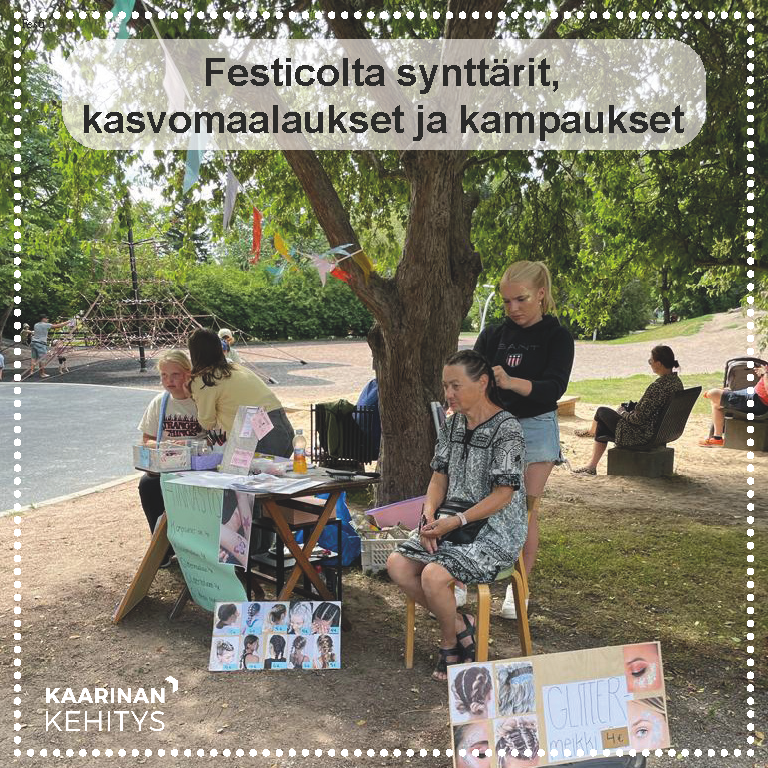 Festico järjestää lasten synttäreitä ja tekee kasvomaalauksia ja kampauksia festareilla ja muissa tapahtumissa.