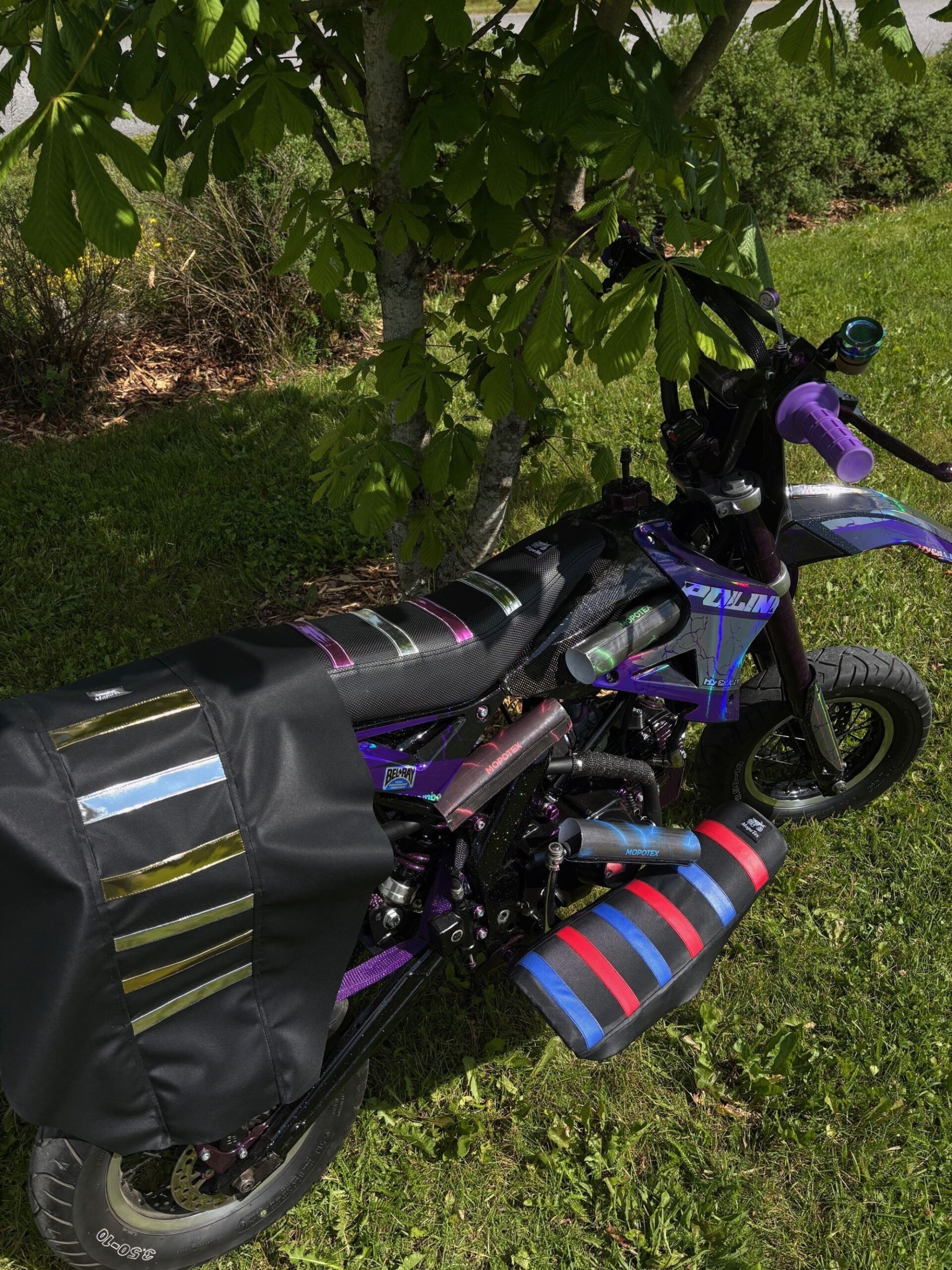 Kustomoidut tekstiilit esimerkiksi penkin päälle tekevät moposta ja muista moottori- ja sähköajoneuvoista uniikin.