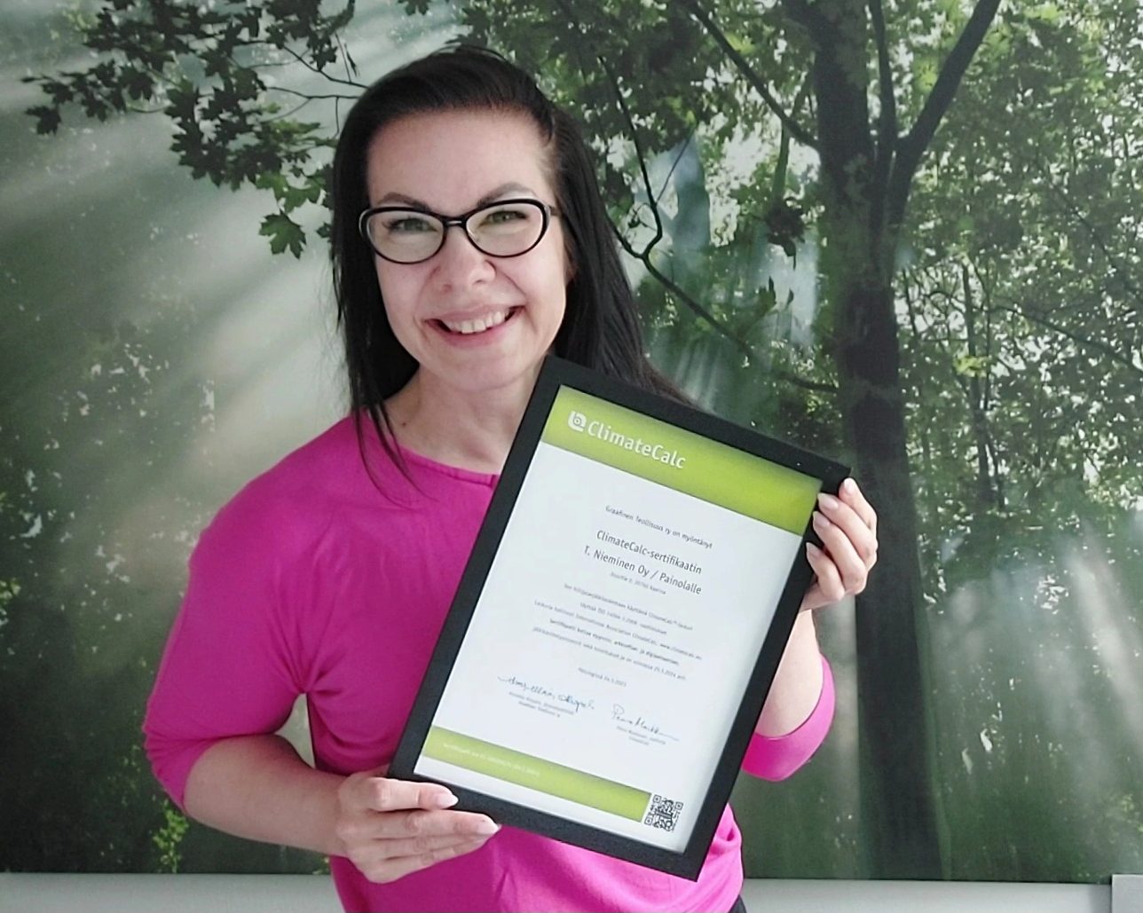 Painotalo Painola tekee kaikki digitaali- ja offsetpainotyöt hiilineutraalisti. Painotalo Painola on ottanut käyttöön uuden käytännön, joka edistää kestävää kehitystä ja ympäristön suojelua. Painolan hiilidioksidipäästöt lasketaan ClimateCalc-hiilijalanjälkilaskurilla, joka on painoteollisuudelle kehitetty tarkka ja luotettava työkalu. Tämä uudistus on mahdollistanut kaikkien digitaali- ja offsetpainotöiden hiilineutraalin toteutuksen.